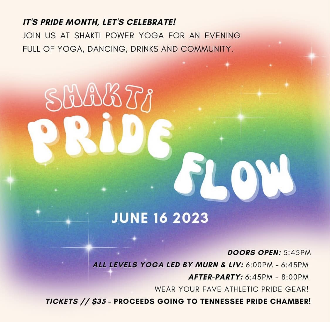 Join us at Shakti Power Yoga for a Pride Flow celebration that is full of movement, music, dancing, dinks and community!